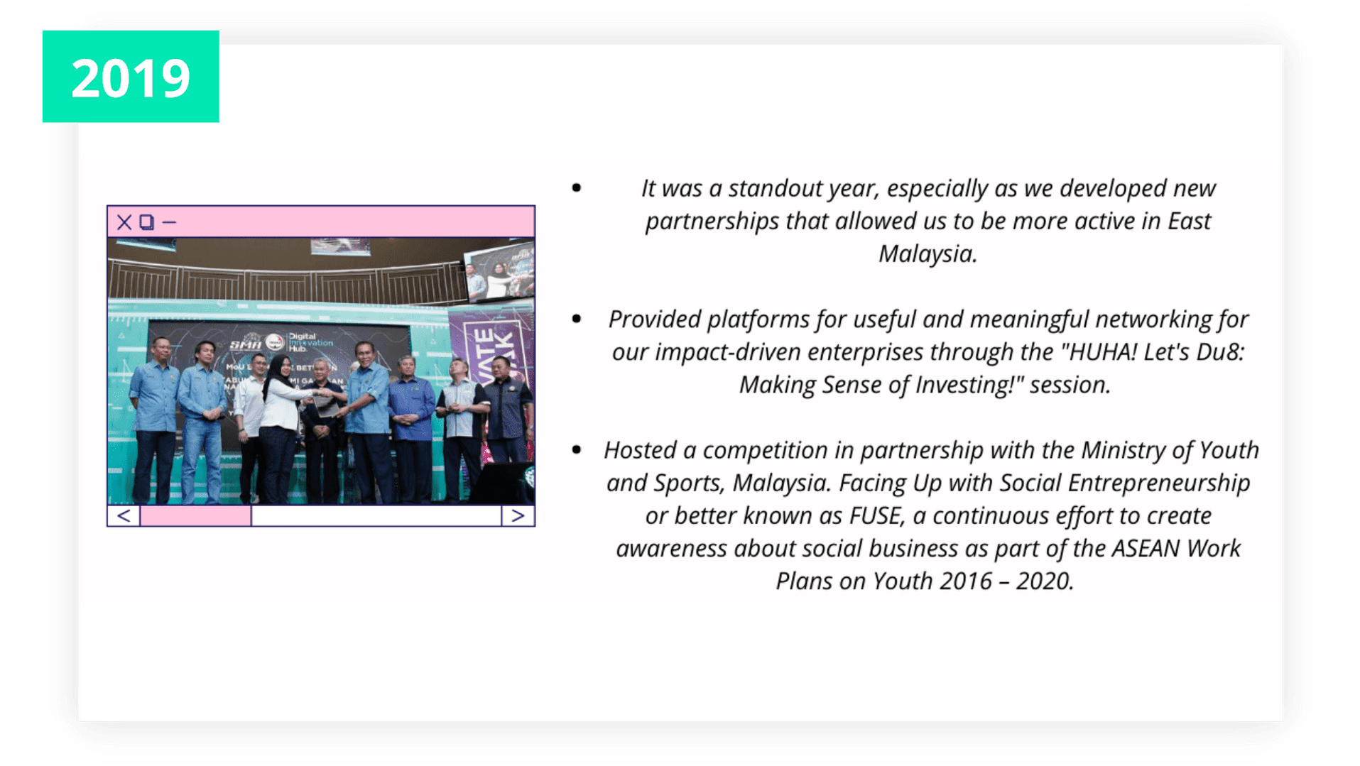 Every Malaysian youth will make a positive sustainable impact to society and planet.